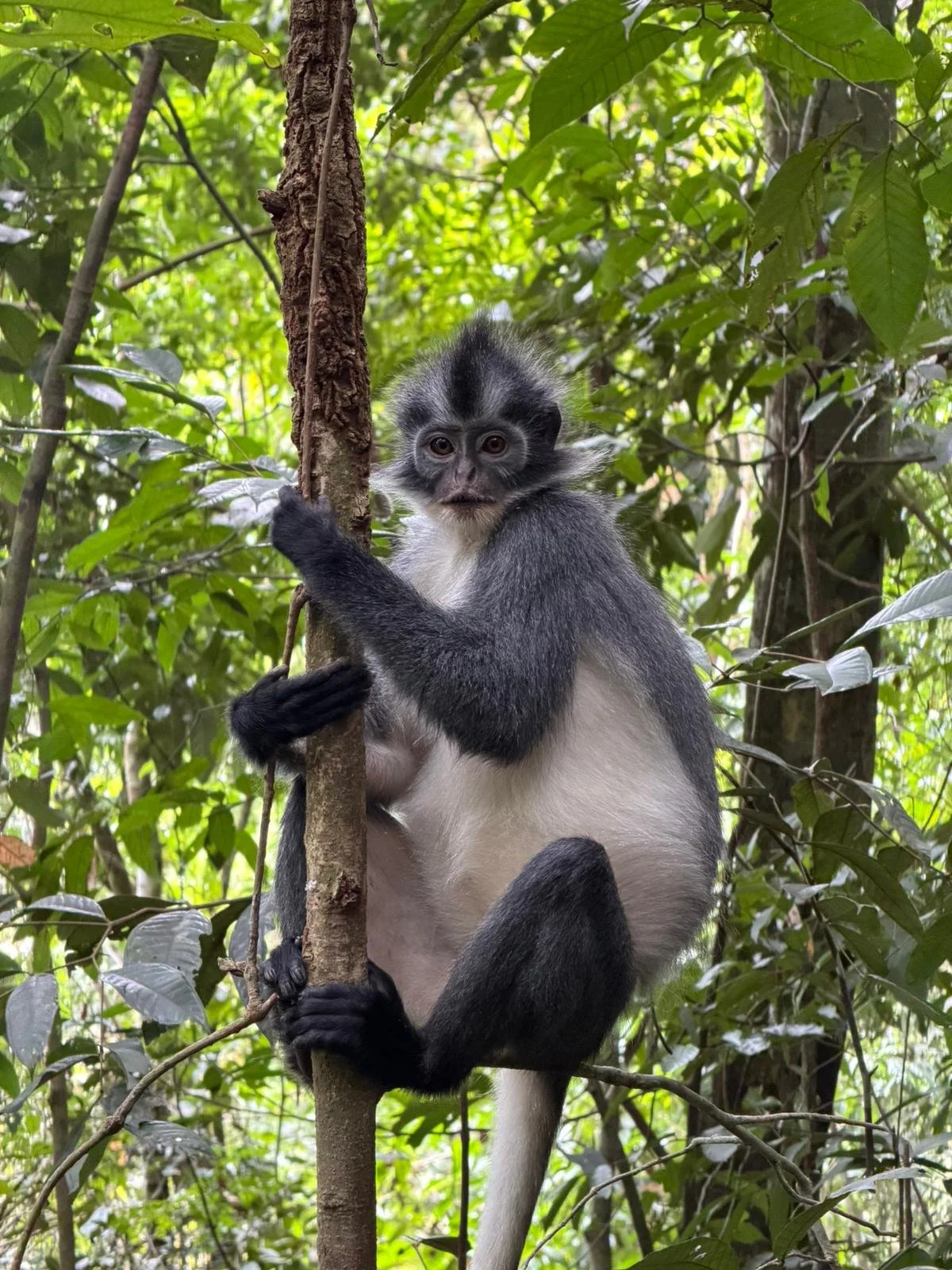 Thomas’s leaf monkeys mainly eat young leaves and shoots, which is why they are frequently spotted feeding in the forest canopy.